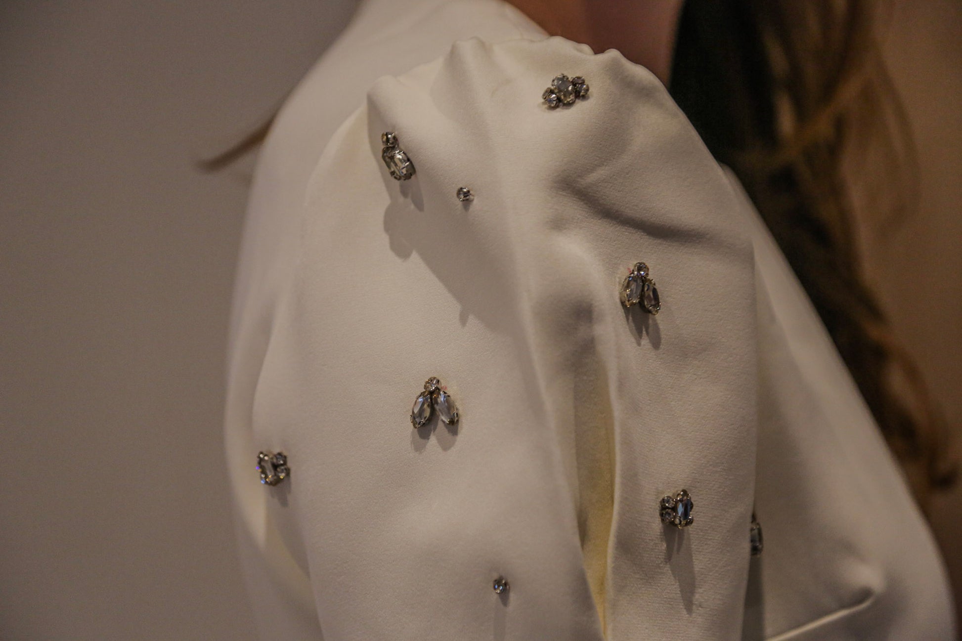 Korte pofmouwen met decoratieve steentjes